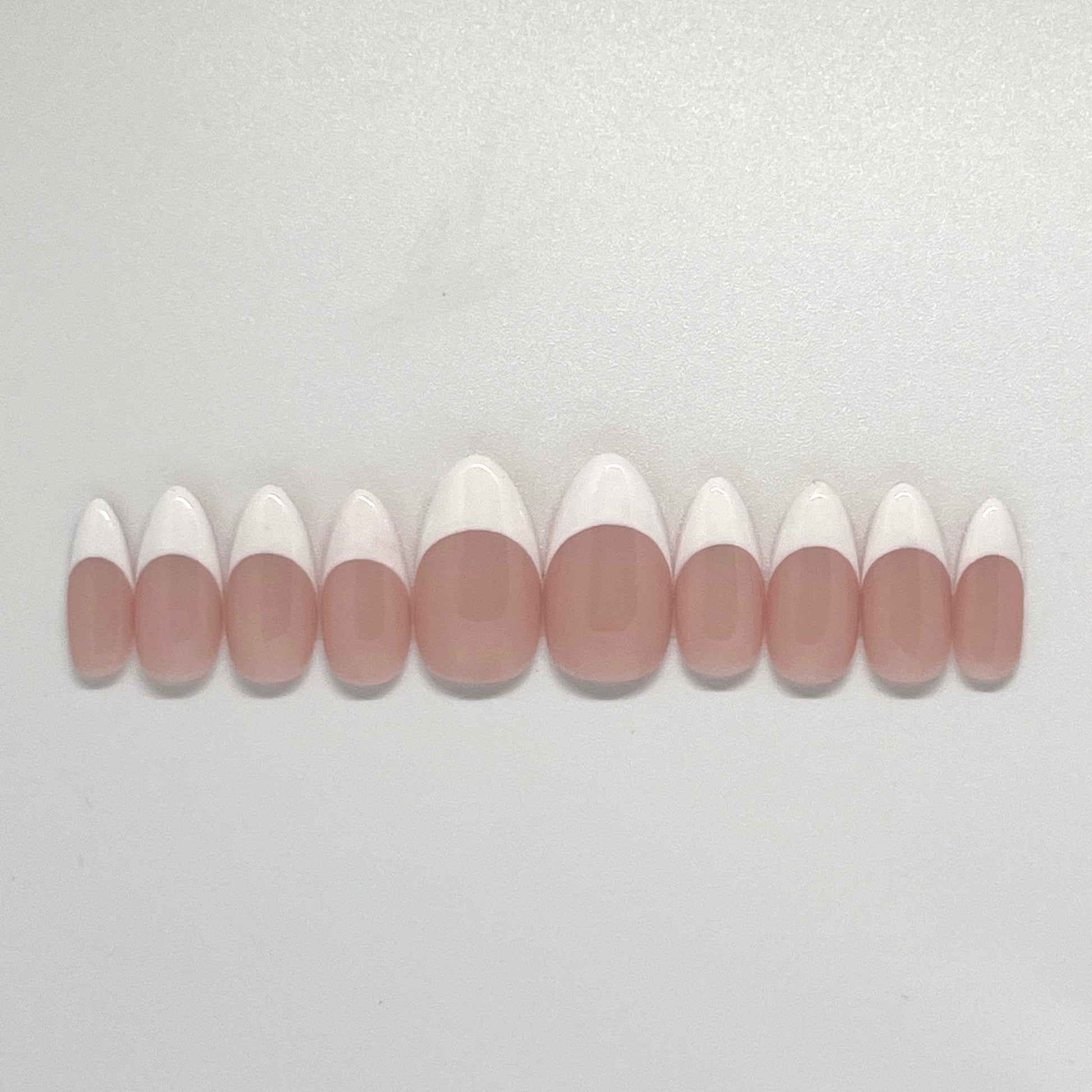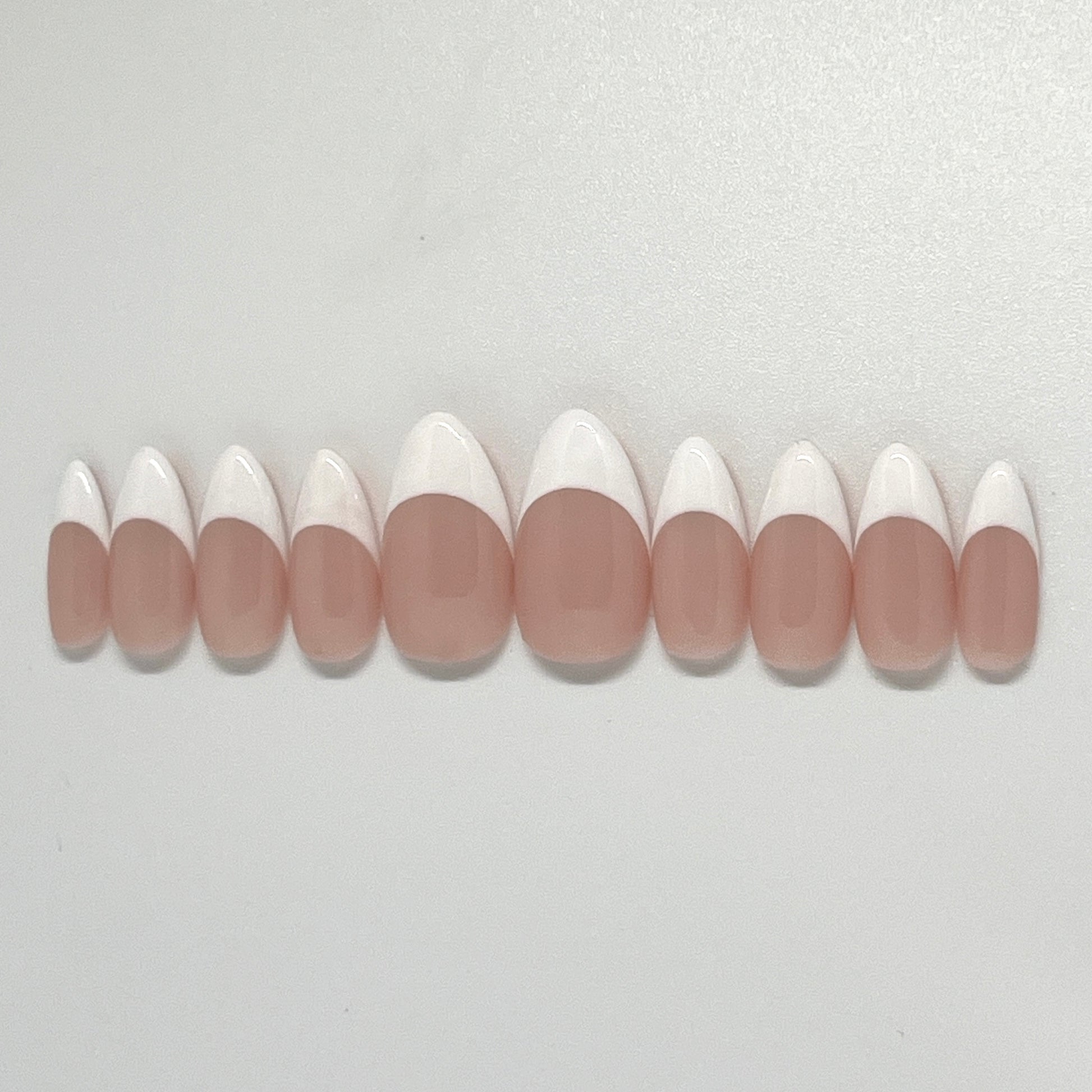 A flirty take on the Classic, French Kiss brings soft almond curves and crisp white tips for a romantic, polished look.